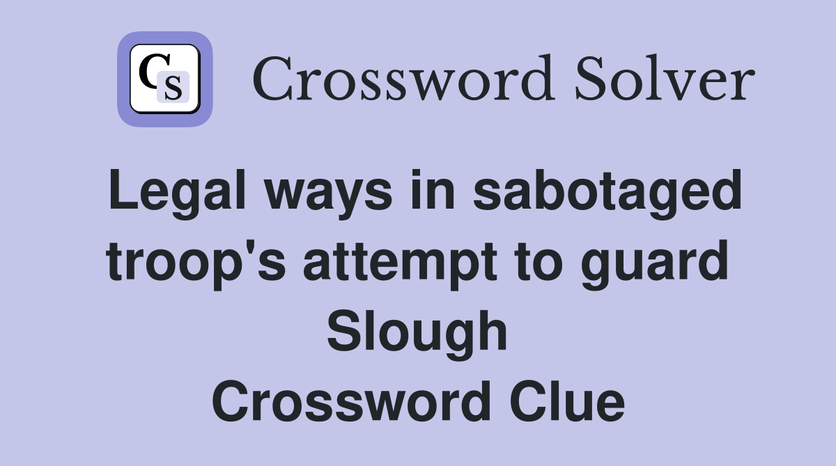 Legal ways in sabotaged troop #39 s attempt to guard Slough Crossword