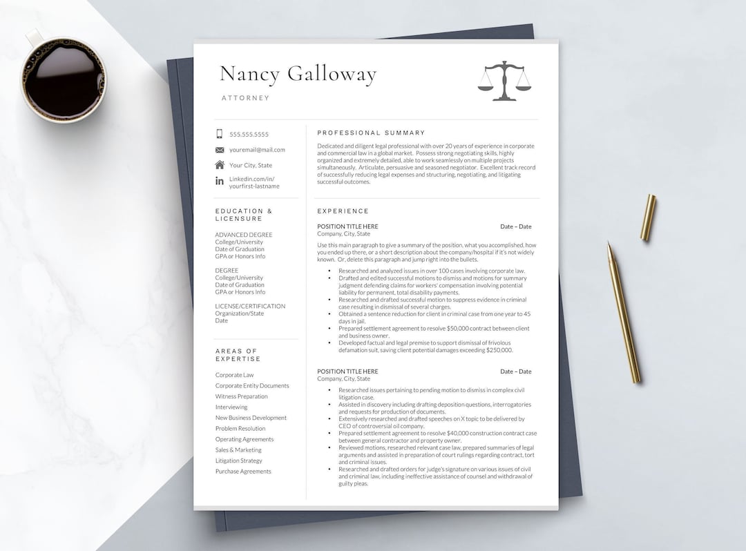 Legal Resume Template Word Pages Lawyer CV Attorney Curriculum