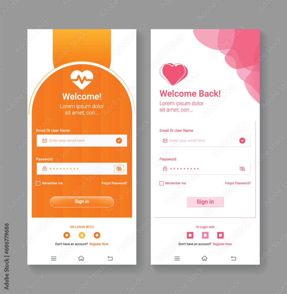 Vector app UI design login page templates login screen for unique app