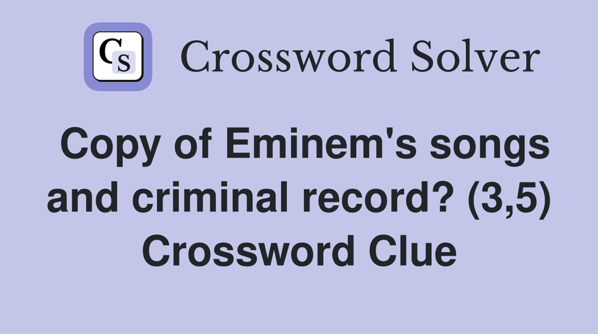 Copy of Eminem #39 s songs and criminal record? (3 5) Crossword Clue