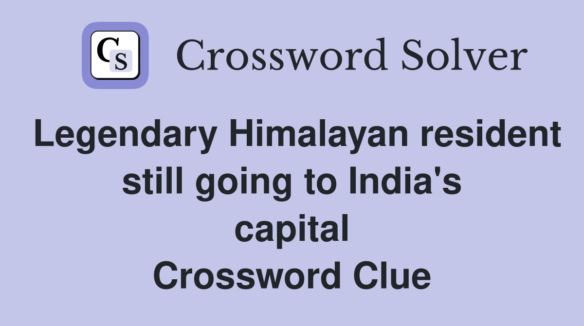 Legendary Himalayan resident still going to India #39 s capital Crossword