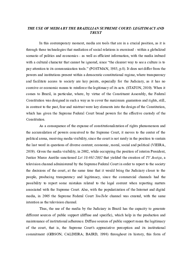 (DOC) THE USE OF MEDIA BY THE BRAZILIAN SUPREME COURT: LEGITIMACY AND TRUST
