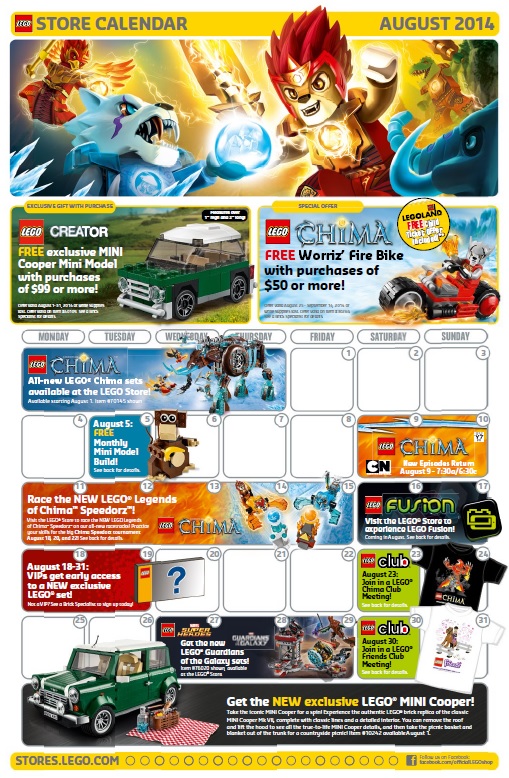 August 2013 LEGO Store Calendar Scans: Events Giveaways More