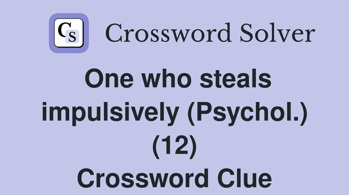 One who steals impulsively (Psychol ) (12) Crossword Clue Answers