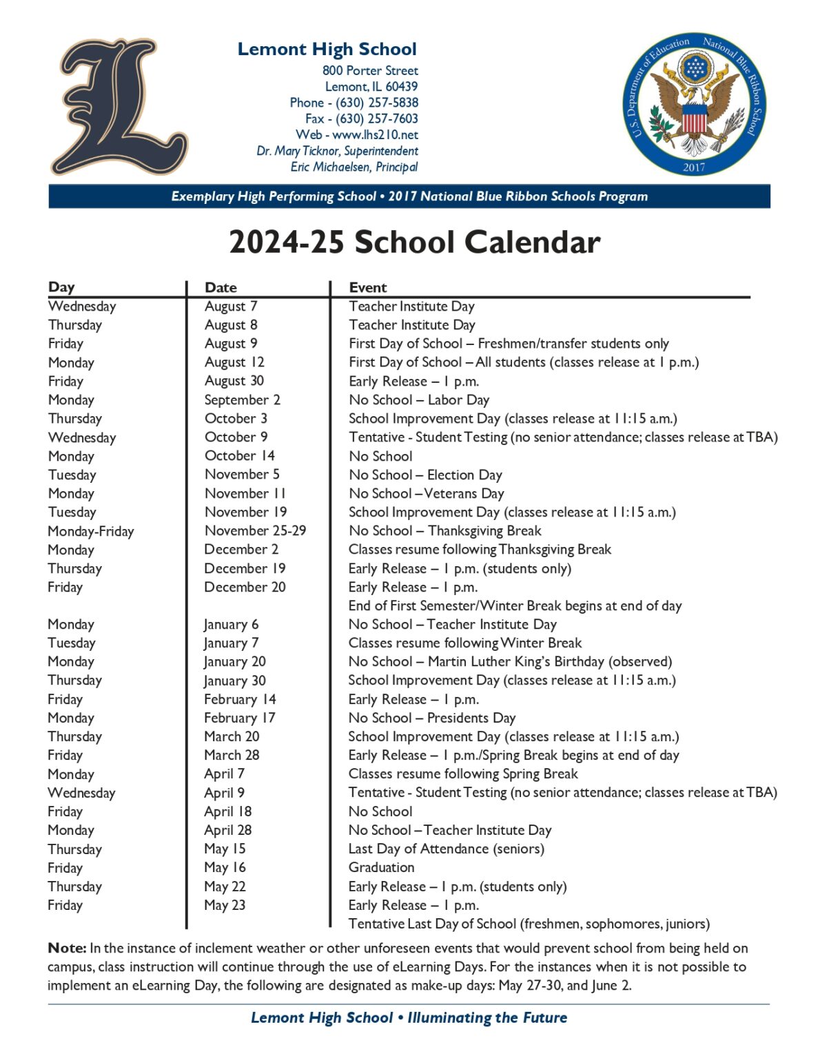 Lemont High School Calendar 24 25 PDF revised EduCounty