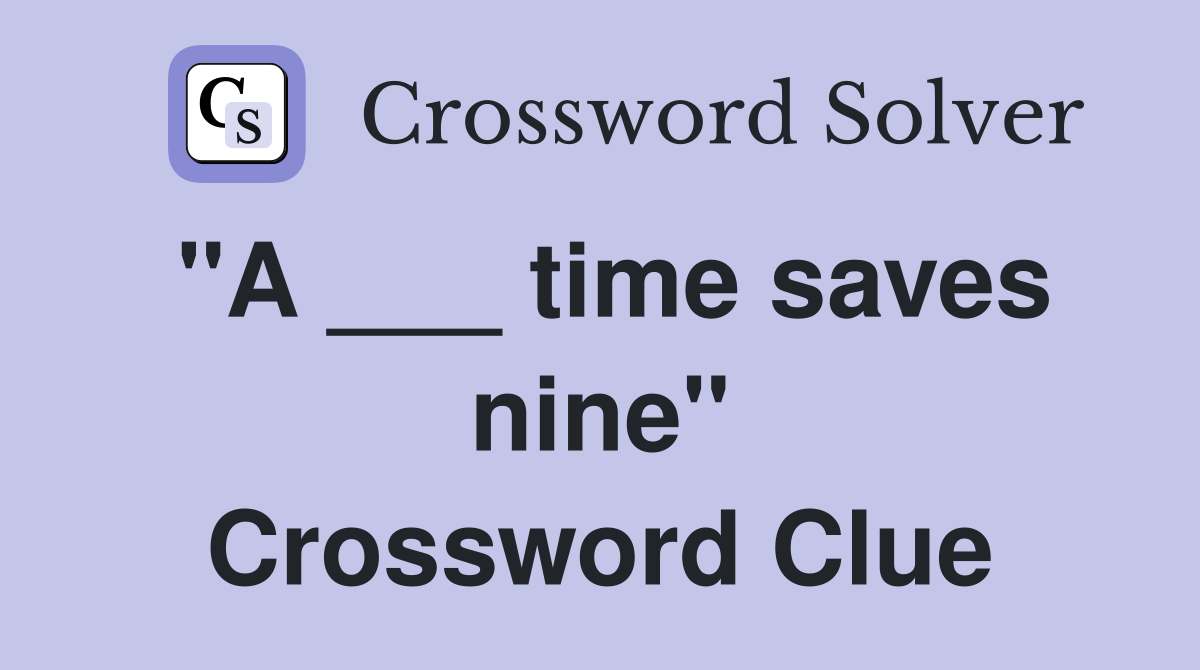 quot A time saves nine quot Crossword Clue Answers Crossword Solver