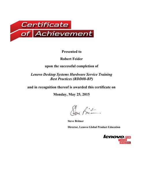 Certification awsp rdd08 lenovo desktop systems hardware service