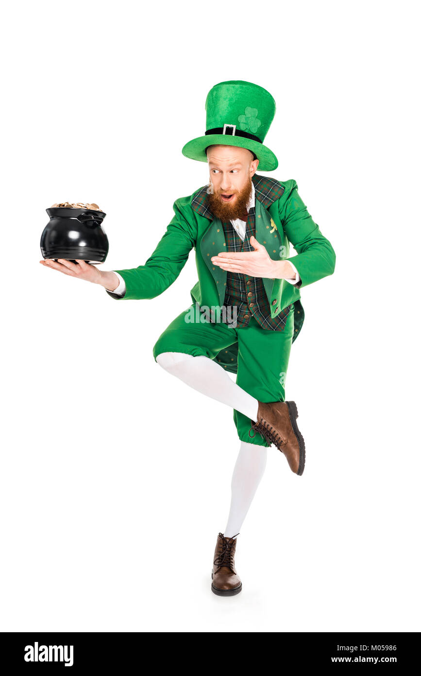 Excited Leprechaun Green Suit Holding Pot Stock Photo 786371824