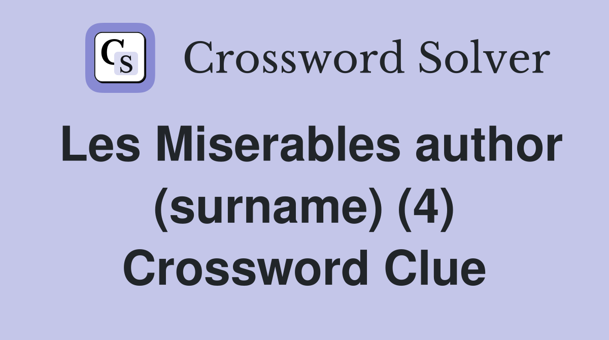 Les Miserables author (surname) (4) Crossword Clue Answers