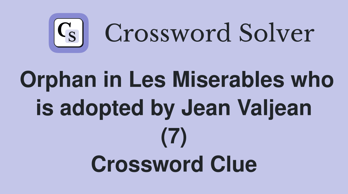 Orphan in Les Miserables who is adopted by Jean Valjean (7) Crossword