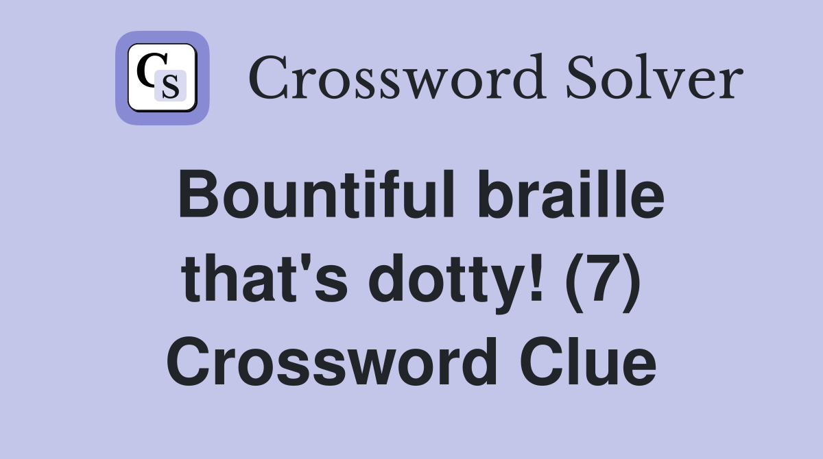Bountiful braille that #39 s dotty (7) Crossword Clue Answers