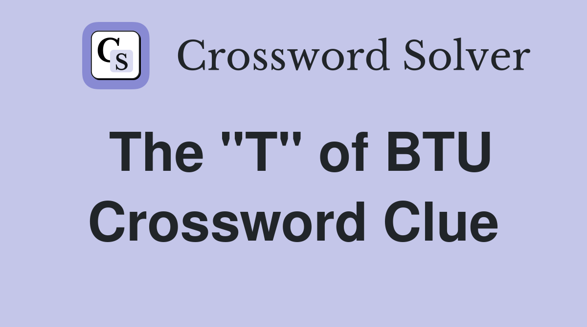 The quot T quot of BTU Crossword Clue Answers Crossword Solver
