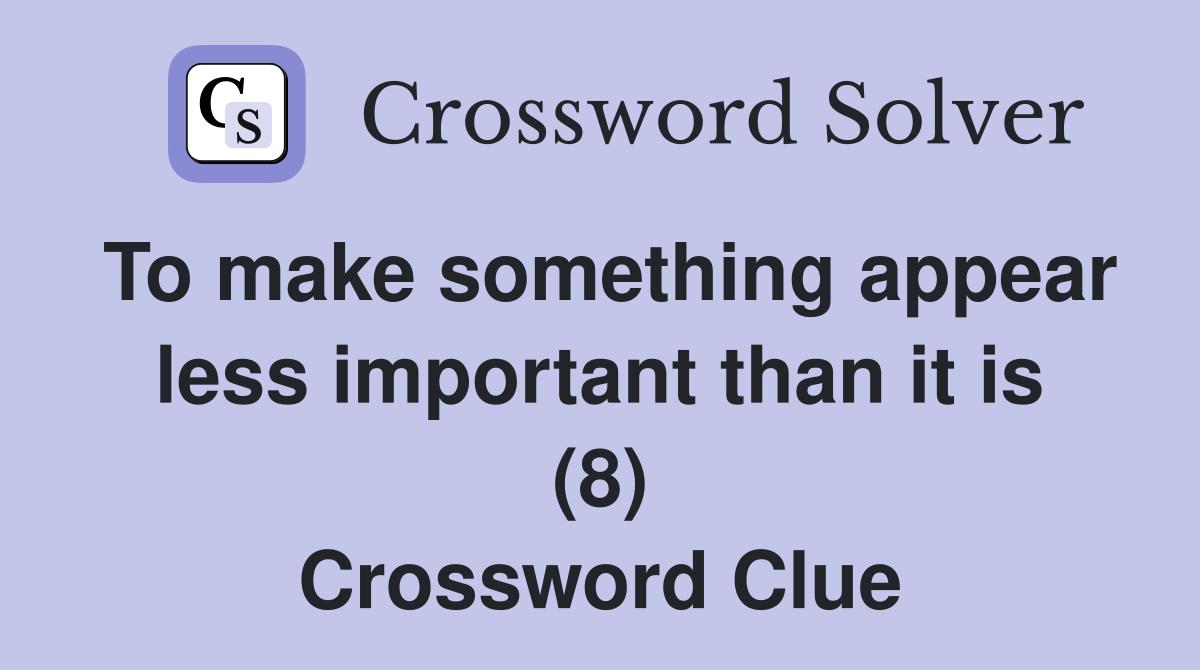 To make something appear less important than it is (8) Crossword Clue
