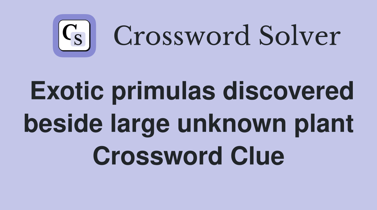 Exotic primulas discovered beside large unknown plant Crossword Clue