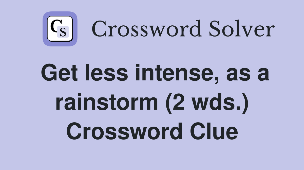 Get less intense as a rainstorm (2 wds ) Crossword Clue Answers