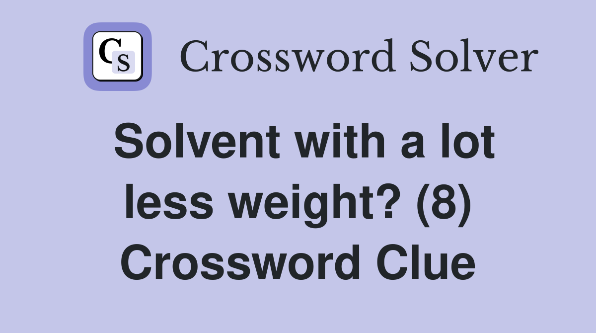 Solvent with a lot less weight? (8) Crossword Clue Answers