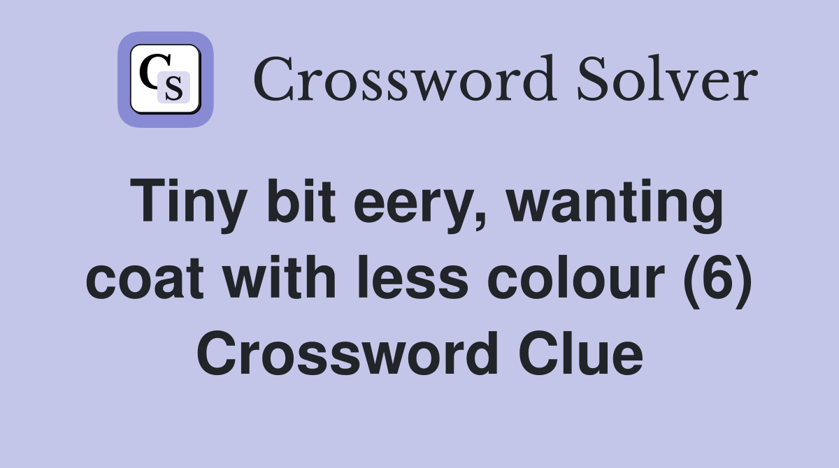Tiny bit eery wanting coat with less colour (6) Crossword Clue