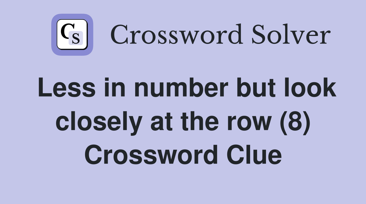 Less in number but look closely at the row (8) Crossword Clue Answers