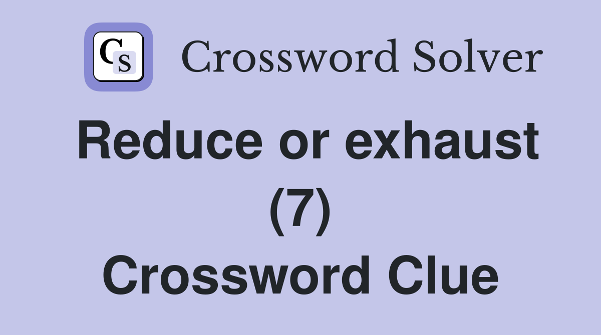 Reduce or exhaust (7) Crossword Clue Answers Crossword Solver