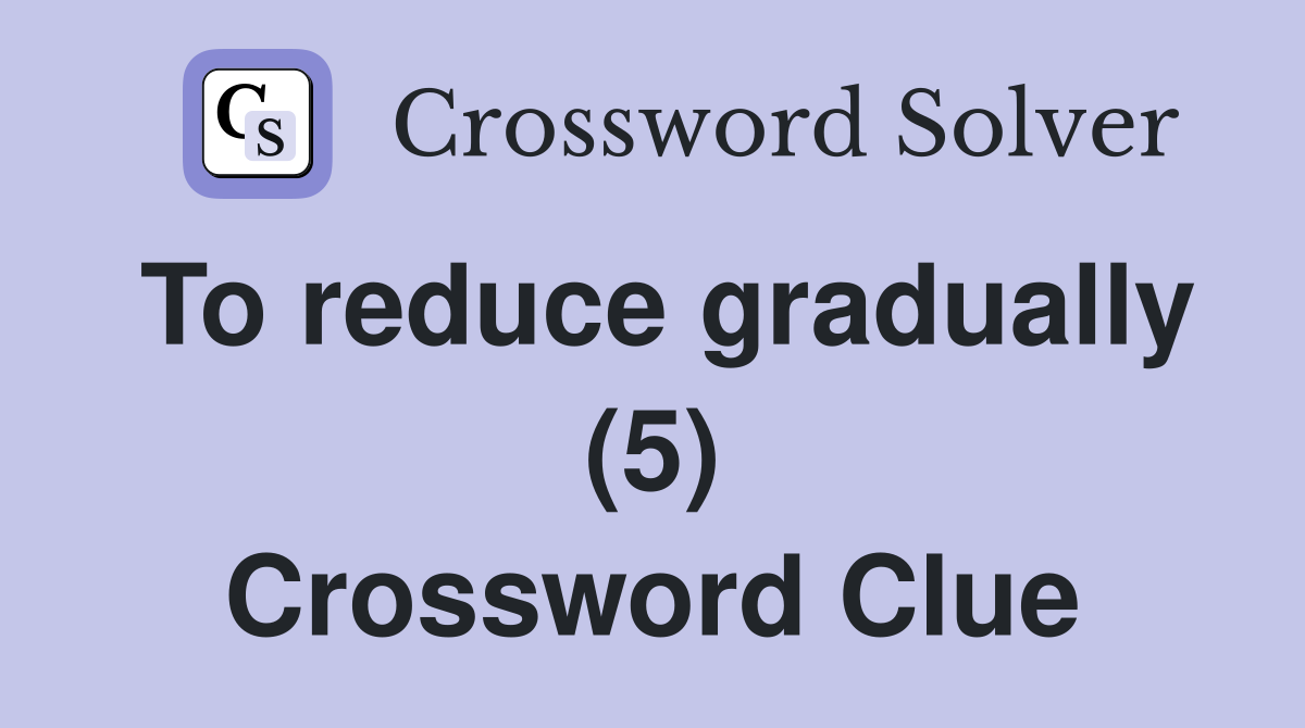 To reduce gradually (5) Crossword Clue Answers Crossword Solver