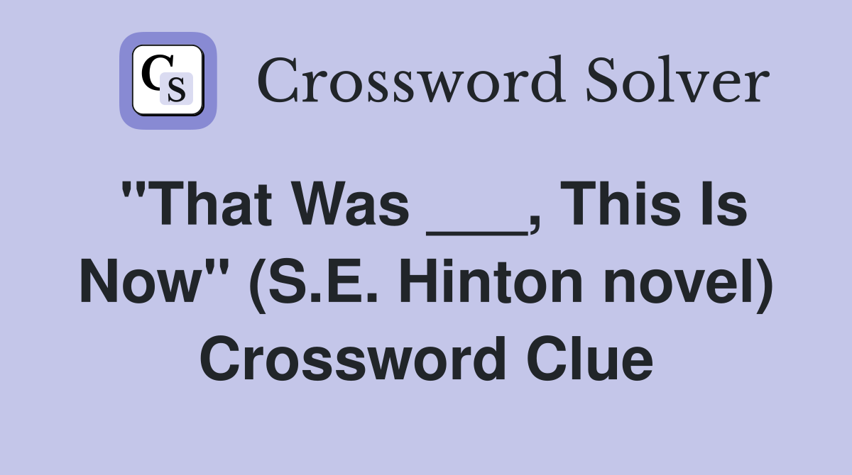 quot That Was This Is Now quot (S E Hinton novel) Crossword Clue