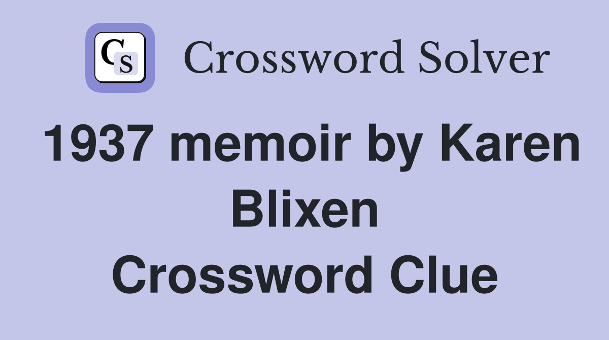 1937 memoir by Karen Blixen Crossword Clue Answers Crossword Solver