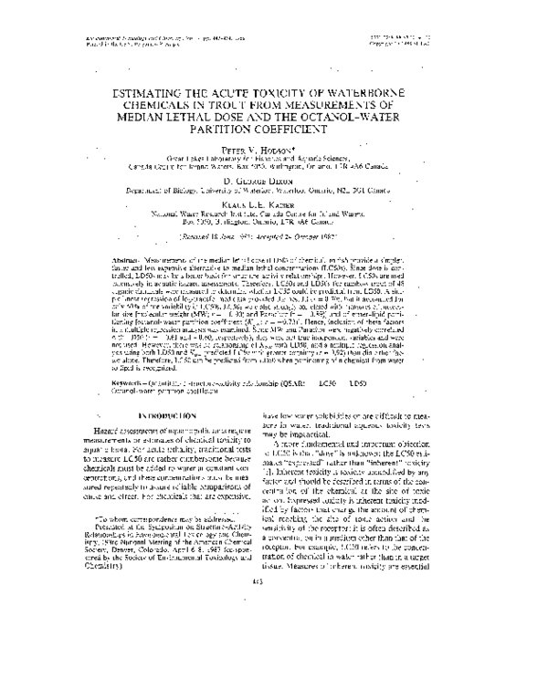 (PDF) Estimating the acute toxicity of waterborne chemicals in trout