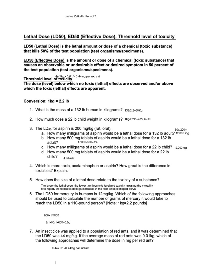 Lethal Dose Toxicity Worksheet Answers Printable Word Searches