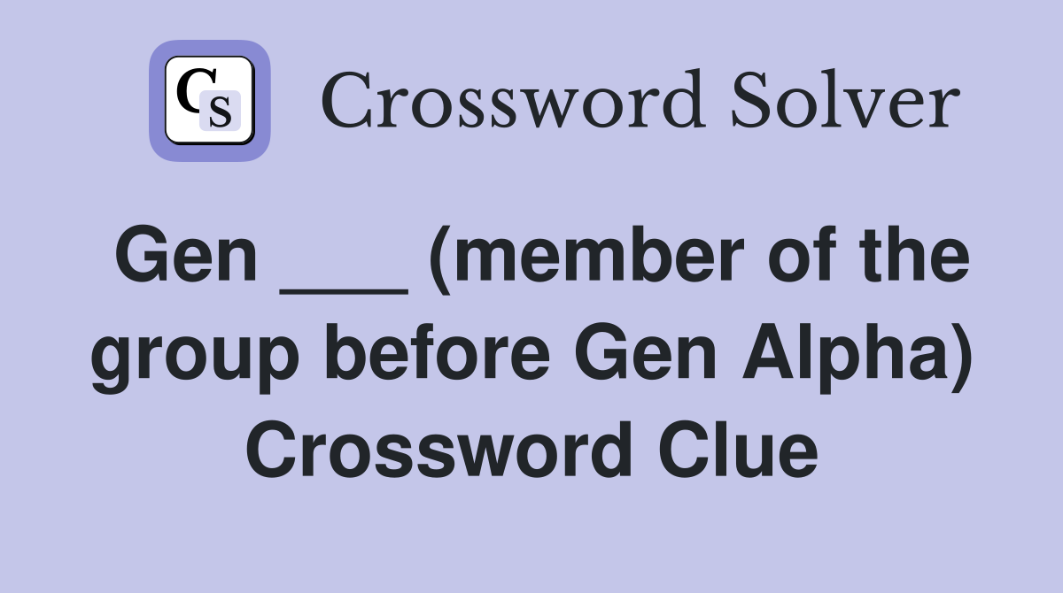 Gen (member of the group before Gen Alpha) Crossword Clue Answers