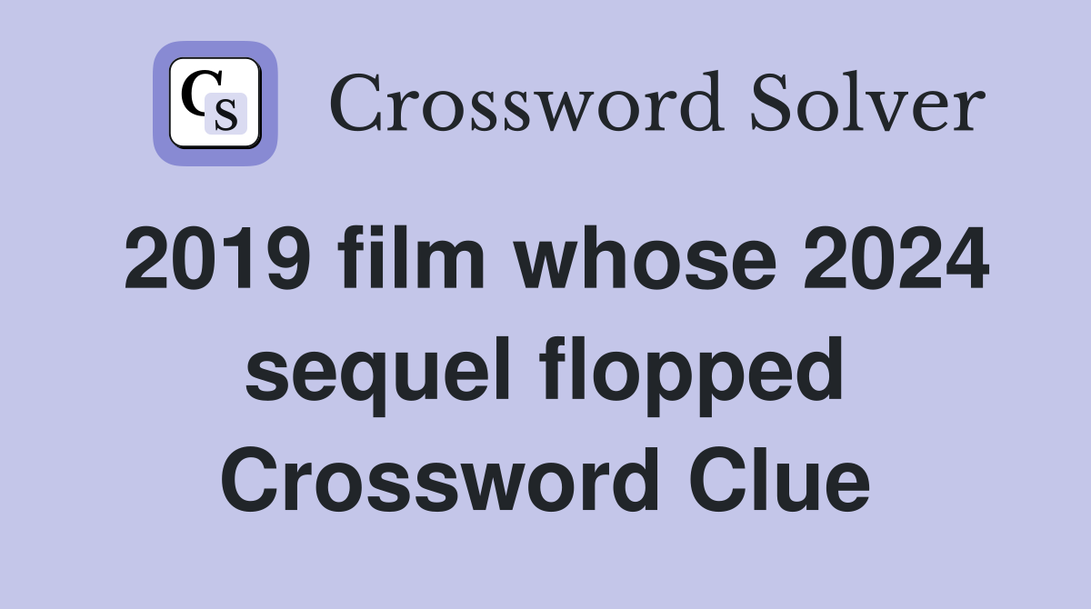 2019 film whose 2024 sequel flopped Crossword Clue Answers