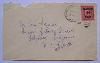 1920 Shanghai US K2 Cover to Hollywood Actor Director Tom Foreman Lasky