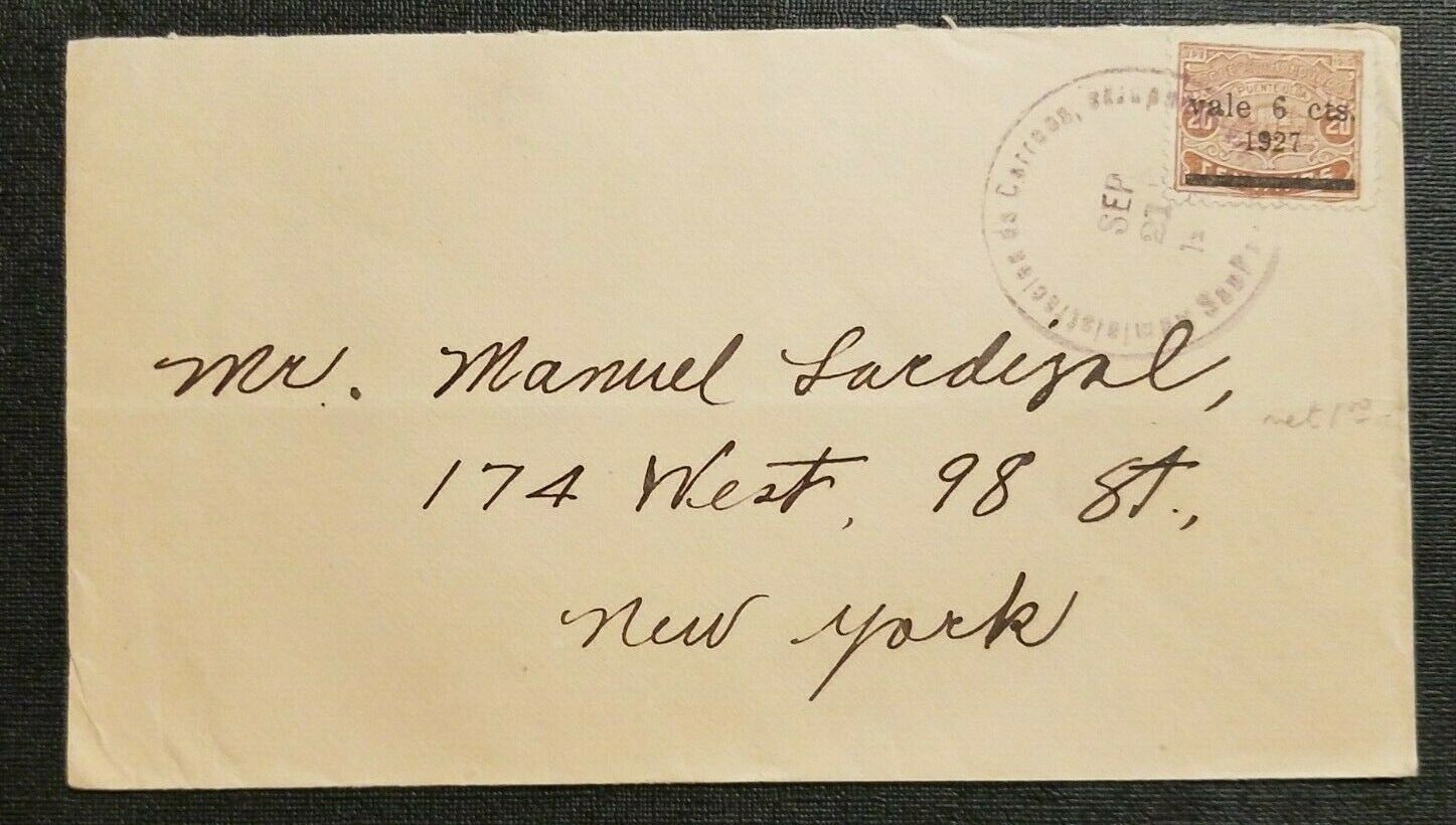 1927 San Pedro Sula Honduras to New York NY Overprint Cover Central