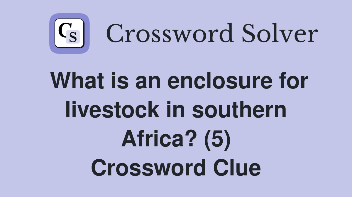 What is an enclosure for livestock in southern Africa? (5) Crossword