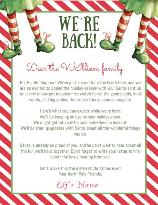Hello Letter from Elves Editable Template Christmas We #39 re Back Elves