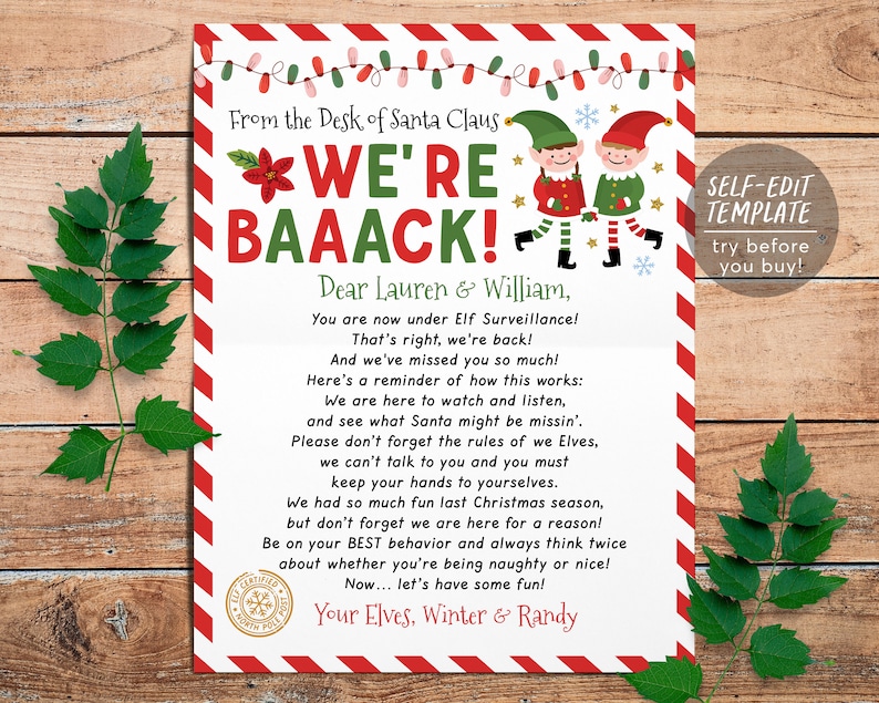 Editable Elves Arrival Letter Elves Return Letter Elves We #39 re Back