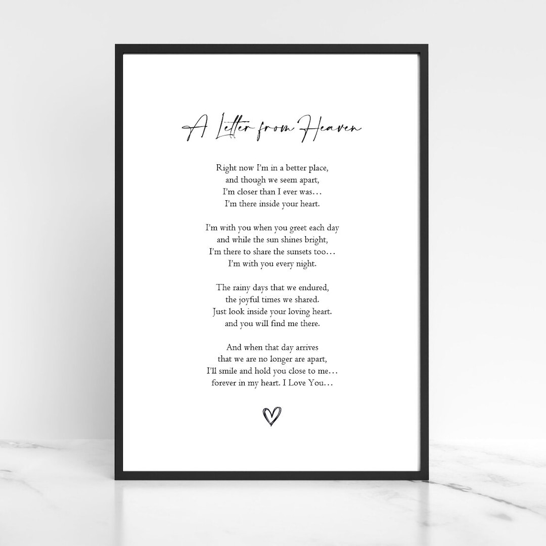 INSTANT DOWNLOAD A Letter From Heaven Family Poem Loved Lost Ones