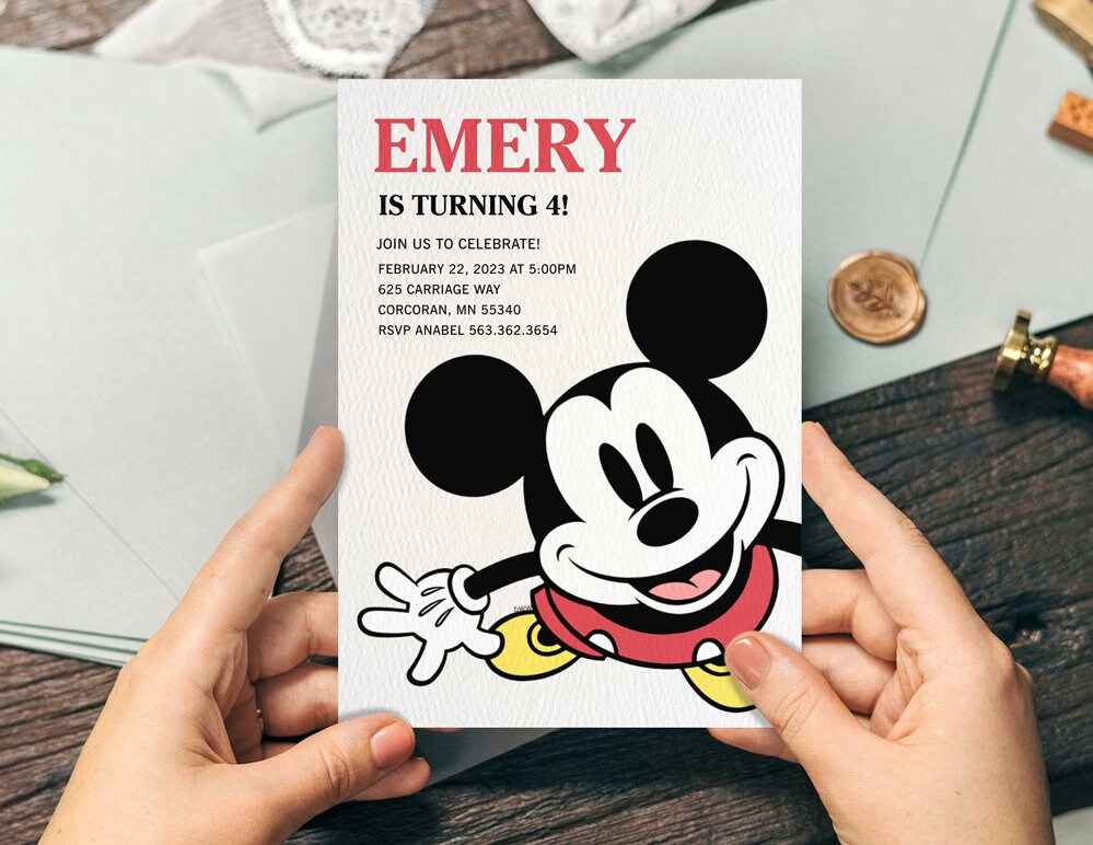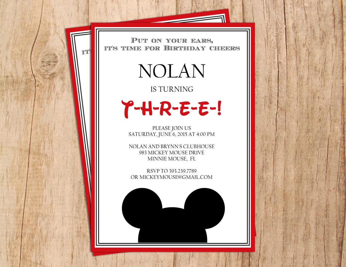 Mickey Mouse Minnie Mouse Modern Birthday Invitation Etsy