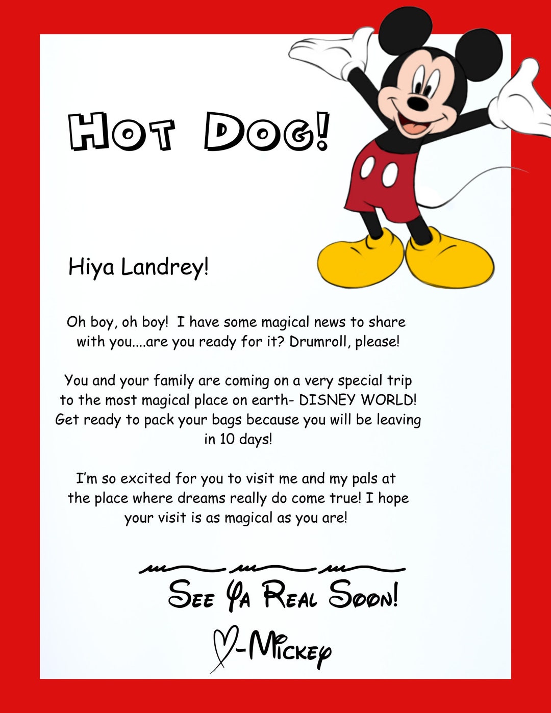 Custom Disney World Letter from Mickey Invitation to Disney Etsy