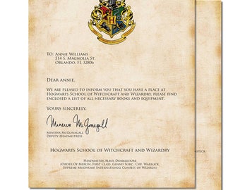 Acceptance Letter to School of Witchcraft and Wizardry Etsy