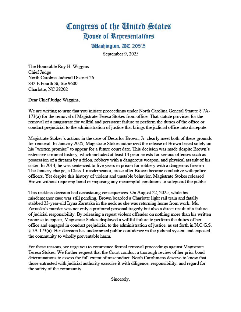 Congressman Tim Moore Leads Letter Demanding the Removal of Judge Who