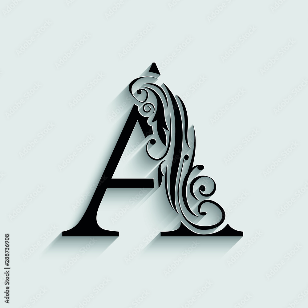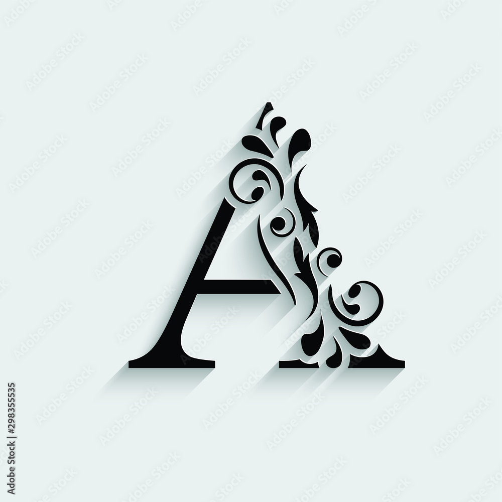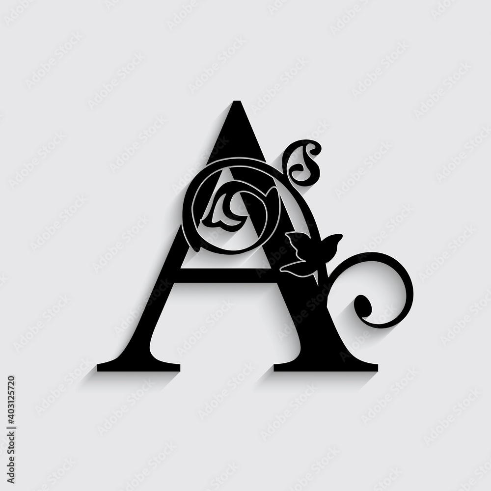 letter A Vintage black flower ornament initial letters Alphabet Logo