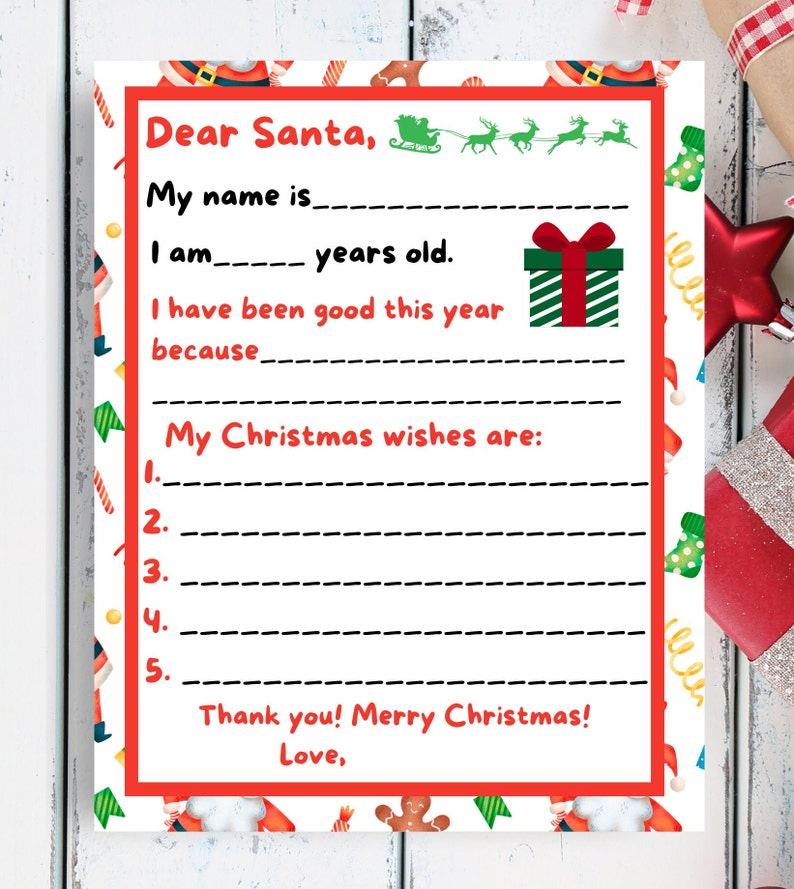 Letter to Santa Printable Santa Letter Christmas List Christmas Wish