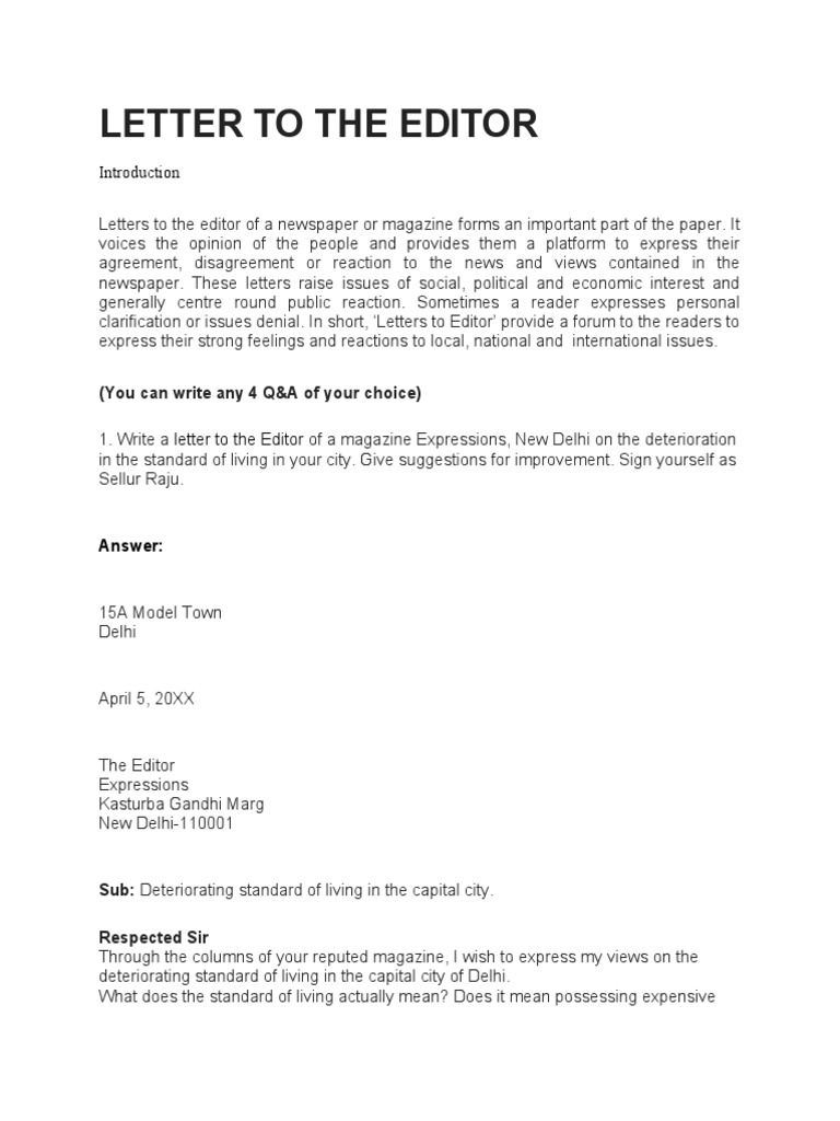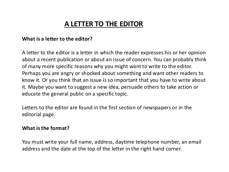 Letter to the Editor Format Samples How to write a Letter to the Editor?