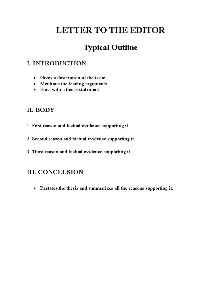 Letter To The Editor Outline PDF Justification Truth