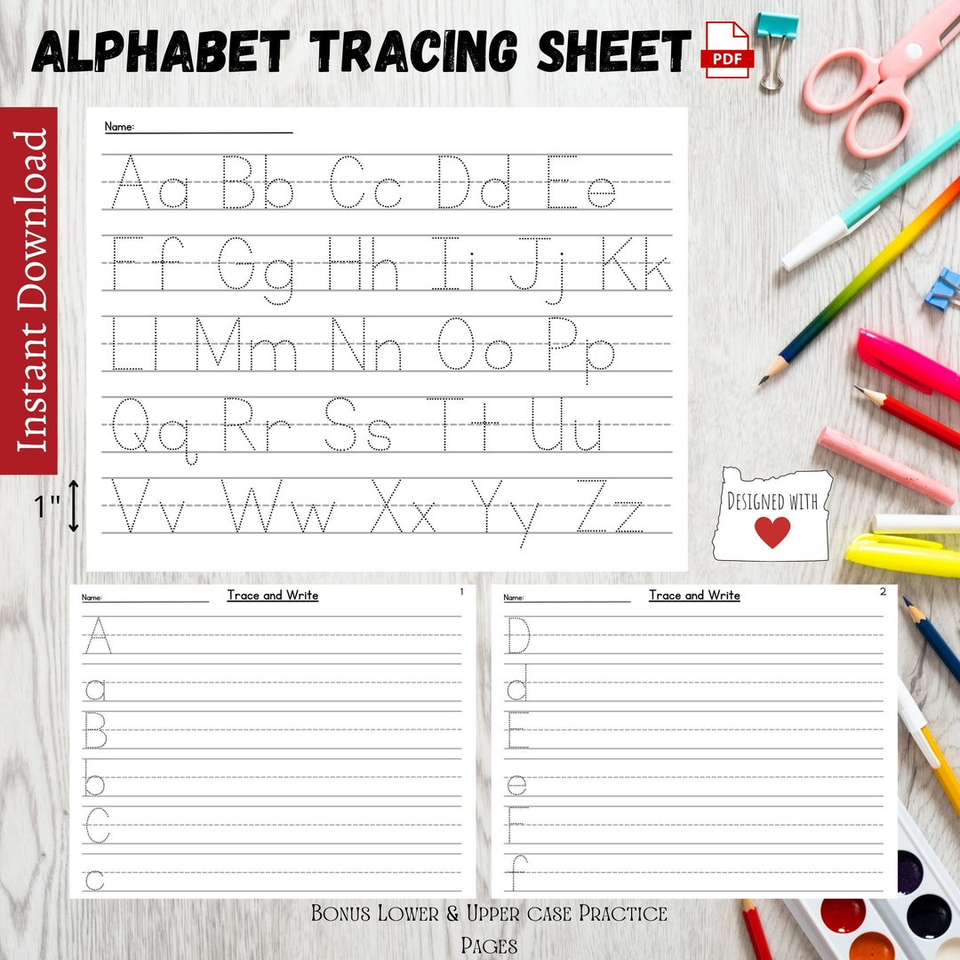 Printable Letter Tracing Worksheet Uppercase and Lowercase Letters Etsy