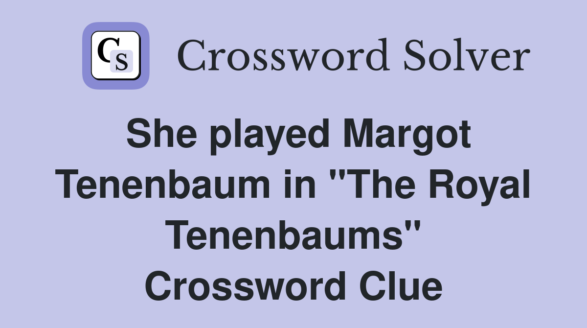 She played Margot Tenenbaum in quot The Royal Tenenbaums quot Crossword Clue