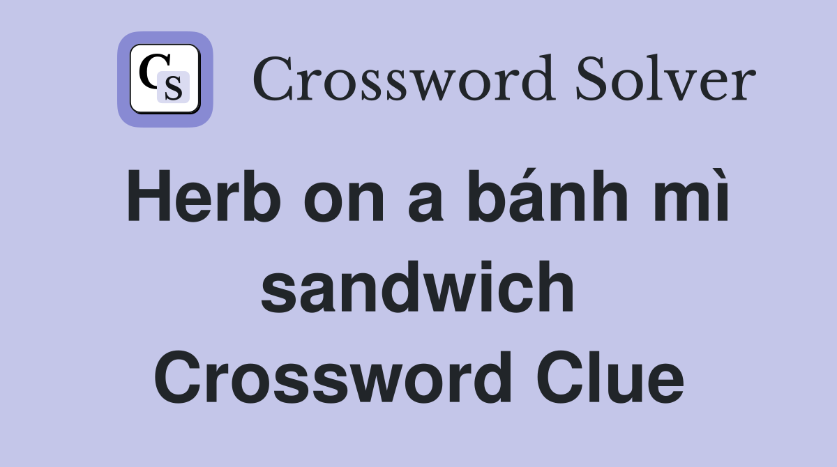 Herb on a bánh mì sandwich Crossword Clue Answers Crossword Solver