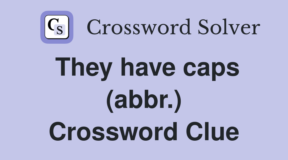 They have caps (abbr ) Crossword Clue Answers Crossword Solver