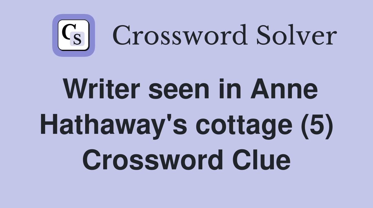 Writer seen in Anne Hathaway #39 s cottage (5) Crossword Clue Answers