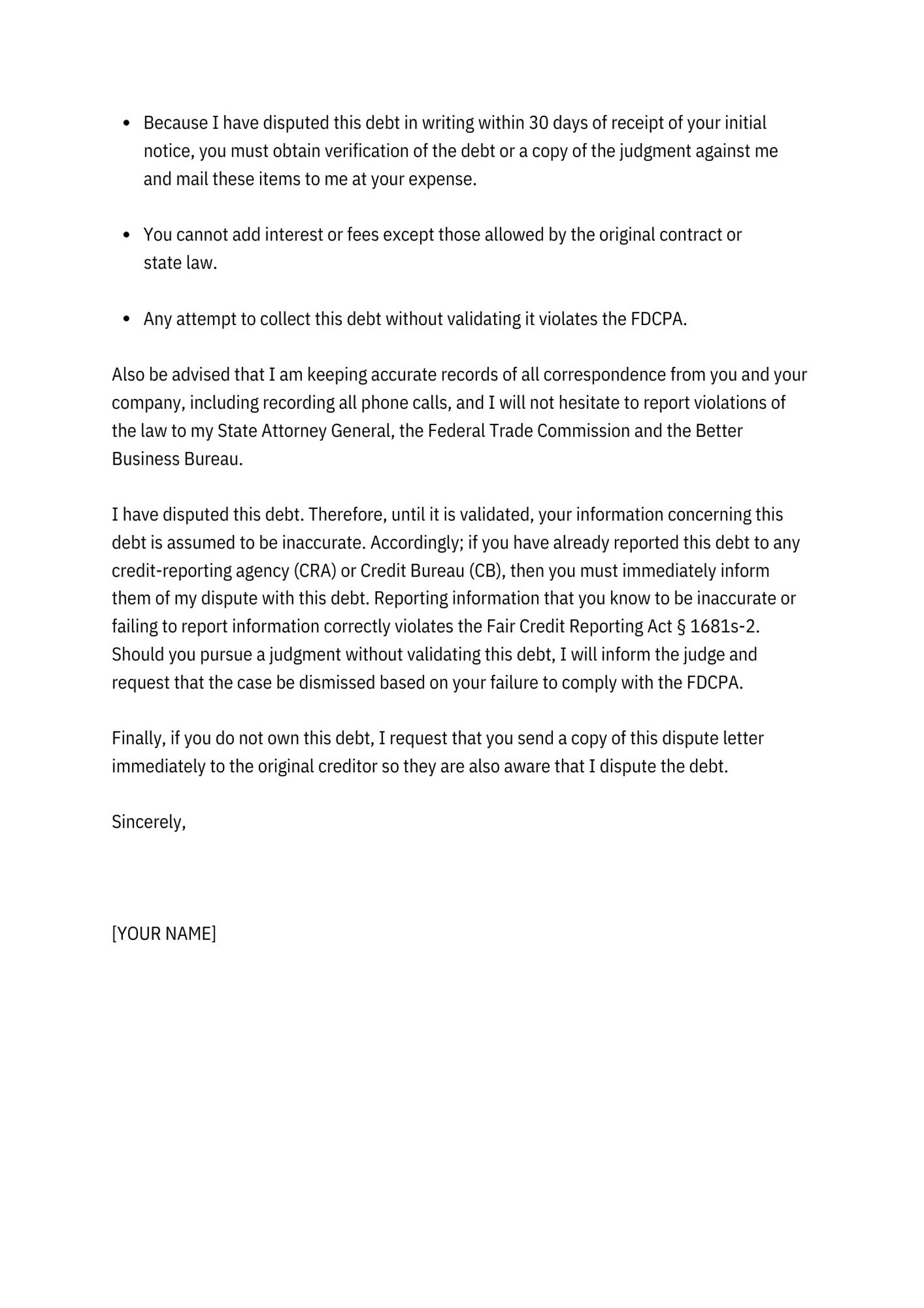 Debt Validation Letter Template